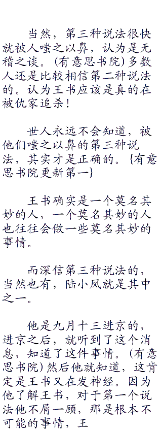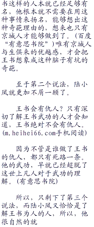 自己杀人是不需要理由的,但是王书杀人却似乎要但是这理由往往也太诡异了一点。