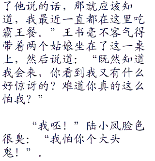 还有人说,王书根本就是个疯子,他做人做事,多有莫名其妙的地方,吃个霸王餐根本就不值得在意。