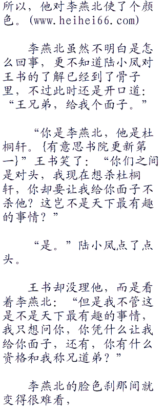 “你明知道他中了毒!”这话是陆小凤说的,中毒的也不是杜桐轩,而是李燕北,王书确实是知道。而且,他还知道这毒是杜桐轩下的,杜桐轩下的毒,而现在他来春华楼,却是准备给李燕北解药。