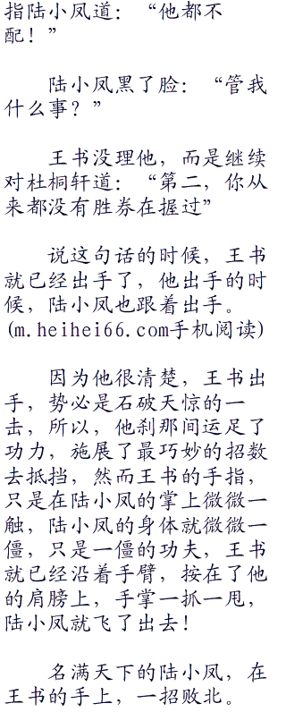 陆小凤却没敢轻易答应,他知道王书这人,当他这么说的时候他就已经开始准备这么做了。下一句话,不管自己说什么,他都会立刻动手。