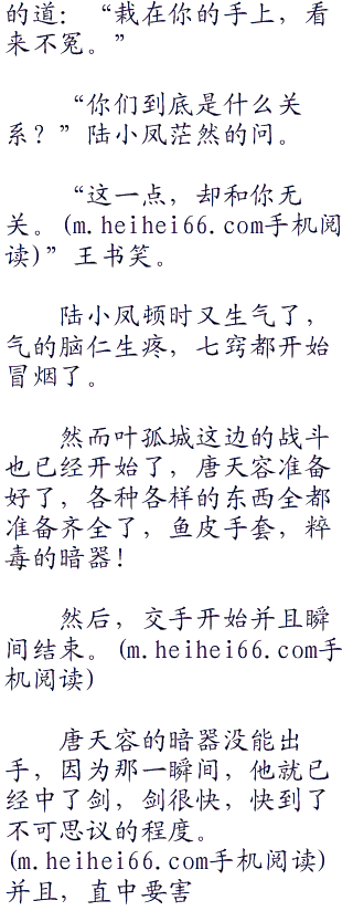 王书却道:“我并不是因为没有杀了这人而叹息,相反,如果我再出手的话,他已经死了。”