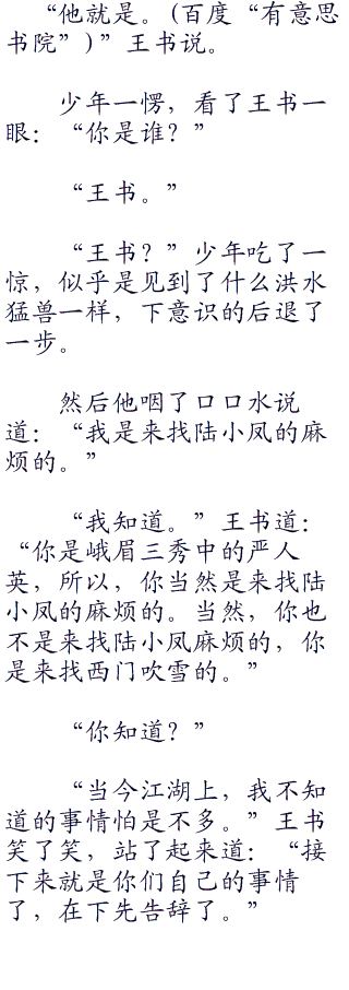 “哦?他们知道我的来历?”王书笑了笑道:“你问了?”