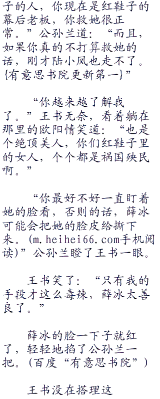 薛冰也在看着王书舞剑,但是她的方向却和公孙兰截然不同,她的目光只是看着王书的剑,嘴角泛起一丝淡淡的笑意。