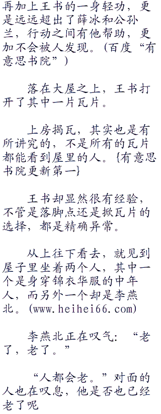 王书却伸手一指,三人纵身而去,转眼之间,就已经来到了一间大屋的屋顶上,三个人行动之间,绝对没有引起任何人的注意,他们的动作本就轻灵的可以。