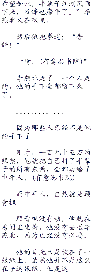 王书笑了笑,然后说道:“欧阳情死不了了,现在叶孤城没有那个闲工夫再来杀她了。”