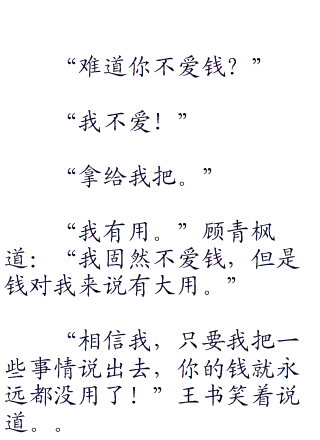 “一个有钱人!”王书回答了几遍都没有说那人是谁,公孙兰很失望的撇了撇嘴。