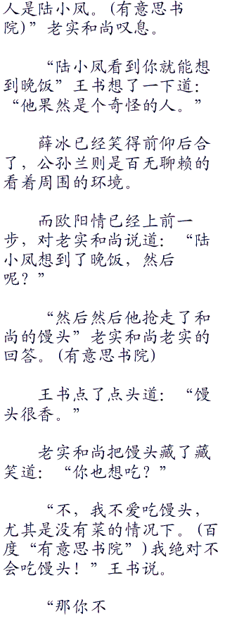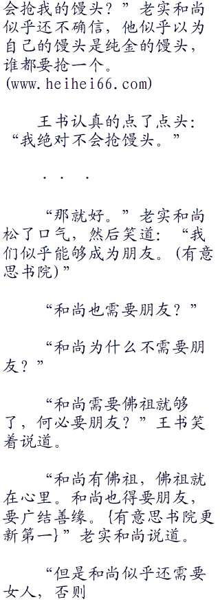 王书也是第一次见到这老实和尚,而此时的老实和尚正在吃馒头,他吃的很认真,认真的几乎没有看到王书。