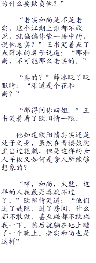 魏子云气的牙根都打颤,却又不知道该生谁的气?陆小凤?他当然不能生他的气,这缎带又不是他凭空变出来的。