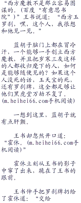 “你果然什么都知道。”蓝胡子苦笑了一声,然后从怀里拿出了一样东西。一块晶莹的玉牌,这就是西方魔教的罗刹牌!