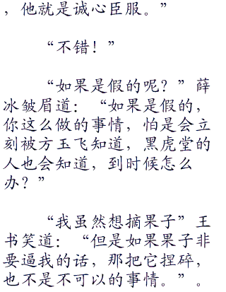 “黑虎堂会因为陆小凤而绝迹江湖。”王书淡淡的道:“如果我在不摘果子的话,怕是真的晚了。”