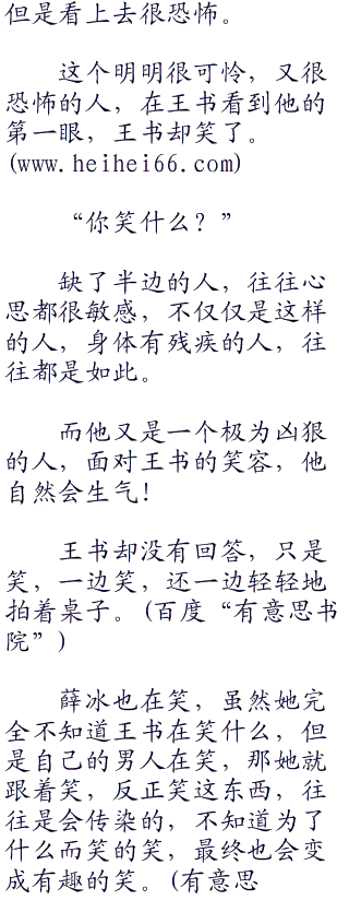 “恩。”王书点了点头:“那是个冰雪的世界,你的名字里,也有一个冰。”