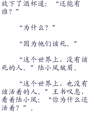 陆小凤的脸色很难看,头很痛,但是王书的脸色很轻松,他不会去为陆小凤头痛,更加不会为他担心,哼着小曲的,就已经来到了下一个目的地。