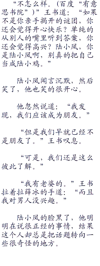 “那这一切其实只是一个阴谋。”王书笑:“其实我有时候很不能理解女人。”
