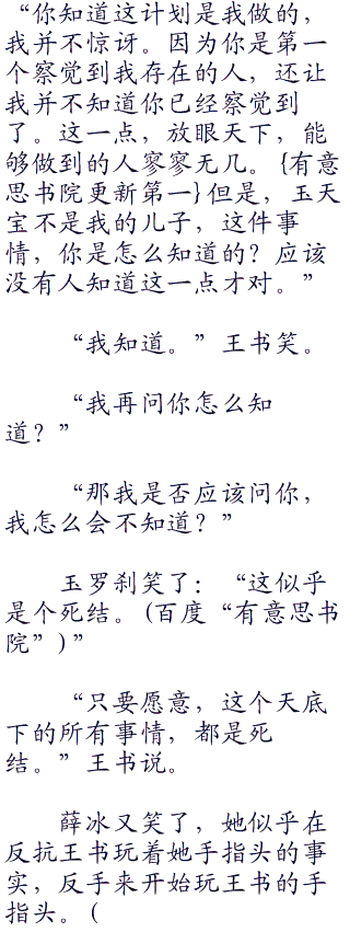 玉罗刹一愣,薛冰也是一愣,天地之间敢这么和玉罗刹说话的人,只有王书一个,也唯有王书一个。王书是可以指着当朝天子说他很有趣的人!这样的人什么话不敢说,什么事不敢做?