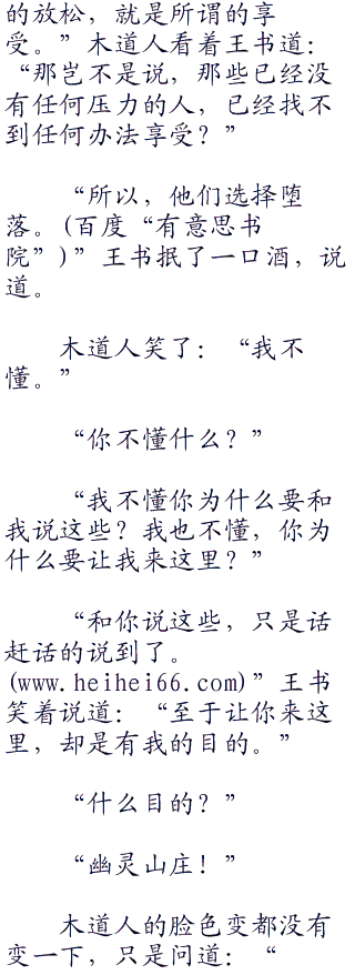 “江湖之上,少有人知道王大侠的去处,只知道是和陆小凤一起失踪的。”木道人笑道:“却不想,王大侠竟然在这里享清福了。”