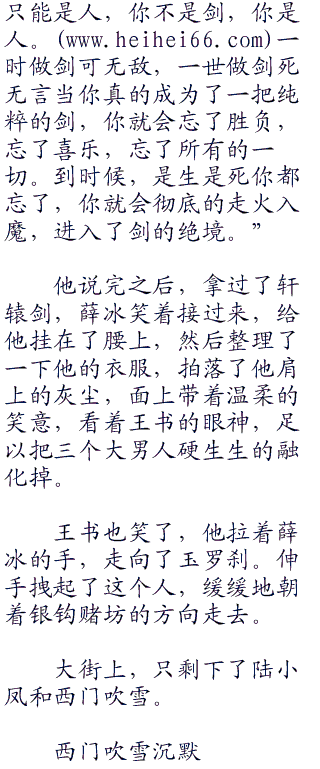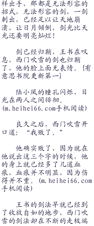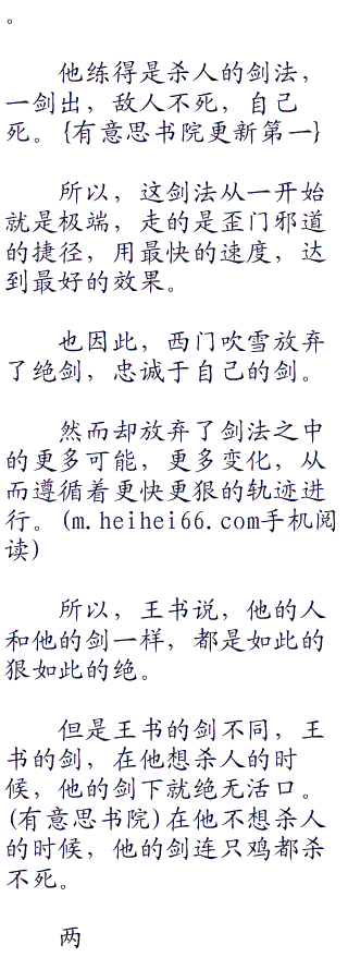 王书看了西门吹雪一眼,笑道:“你的人就和你的剑一样。”