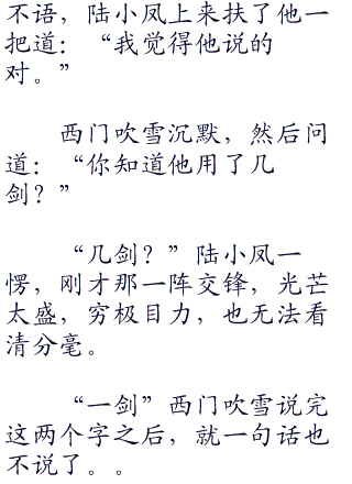 陆小凤只听得浑身发冷,原来王书和玉罗刹的这一战,之所以打了这么许久,却是在等西门吹雪?