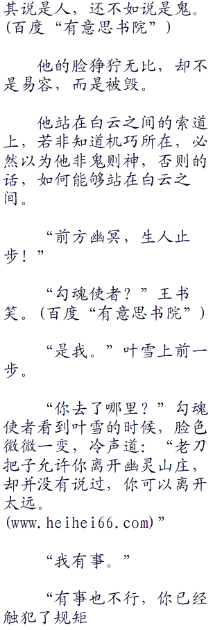 走着走着,叶雪忽然想起了一件事情道:“你不能去幽灵山庄。”