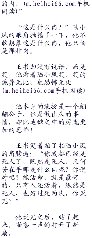 但是陆小凤看到了肉,却没有食欲,他只想吐,因为他想起了将军,想起了那在汤锅之中,身体都被炖烂了的将军。