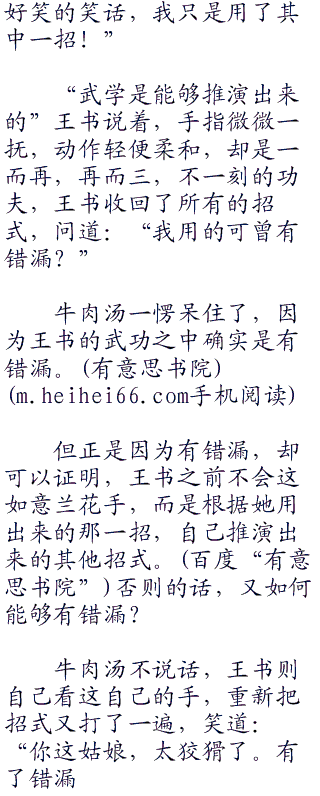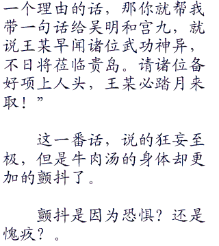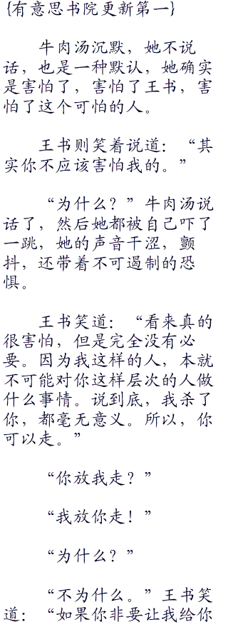“你到底是个什么样的人啊”牛肉汤忽然笑了:“你是王书!”