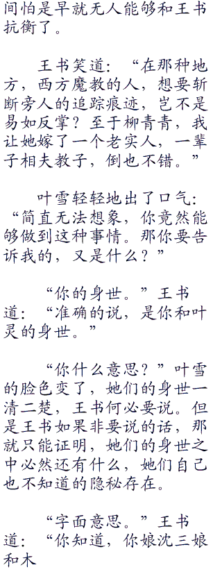 “那又像是谁说的话?”王书笑道:“对了,你去把叶雪给我叫来。”