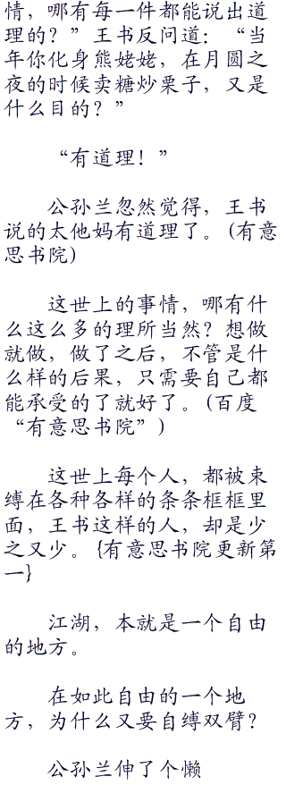 “不知道。”王书道:“正是因为不知道,所以才有趣。”