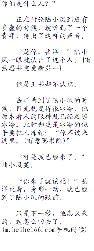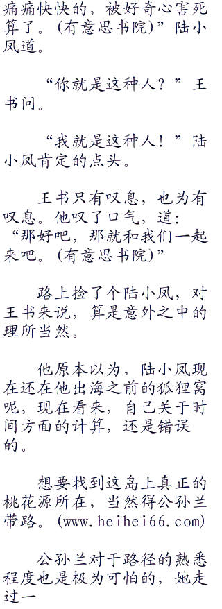 “好吧,我是准备乘船出海,却没想到遇到了风浪,最终被暗流卷到了这岛上。”陆小凤说道:“我现在很饿,也很困,但是更要命的是寂寞。我已经好几天,没有和人说话了。”