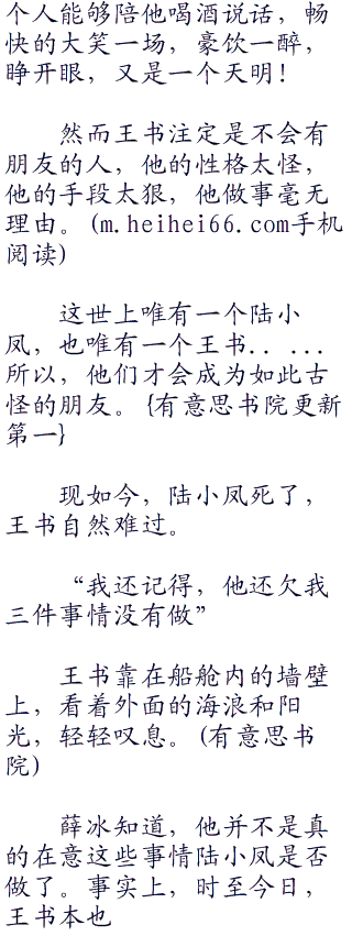 薛冰轻轻地叹了口气,握住了王书的手,她知道,不管是王书还是陆小凤,他们本来应该成为很好的朋友。
