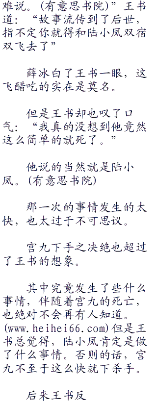 “原来是这样”薛冰傻笑了两声,忽然道:“不知道,我的事情若是流传到后世的话,他们会怎么说我?”