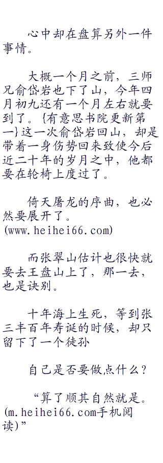 等了盏茶的功夫,就见到张翠山笑嘻嘻的回来,道:“小师弟,练武累不累?”