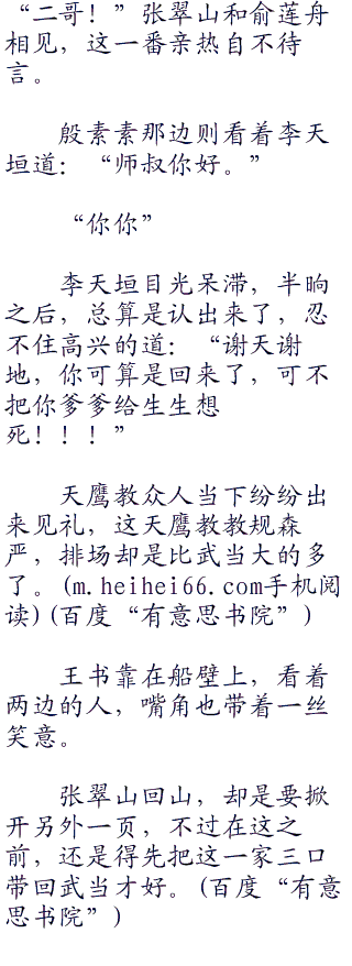 “八弟!”张翠山上来搂住王书,一脸兴奋激动,简直无法言语。