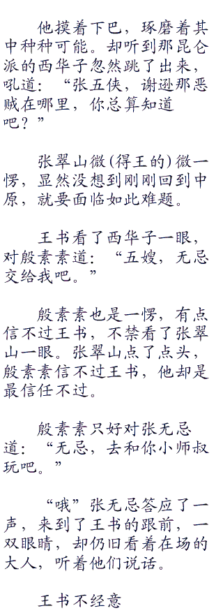 每一次都得扯皮打上一场,王书原本还有点期待可能会见到张翠山一家三口。时间久了之后,反而无所谓了。