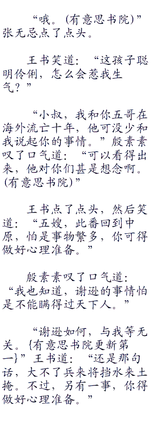 这时候殷素素才对王书说道:“多谢小叔帮我夫妇解围。”