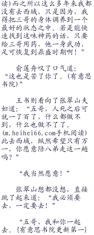 “五哥,我只问你一句。”王书道:“若是有机会弥补这一切,纵然千山万水,你是否愿意前往?”