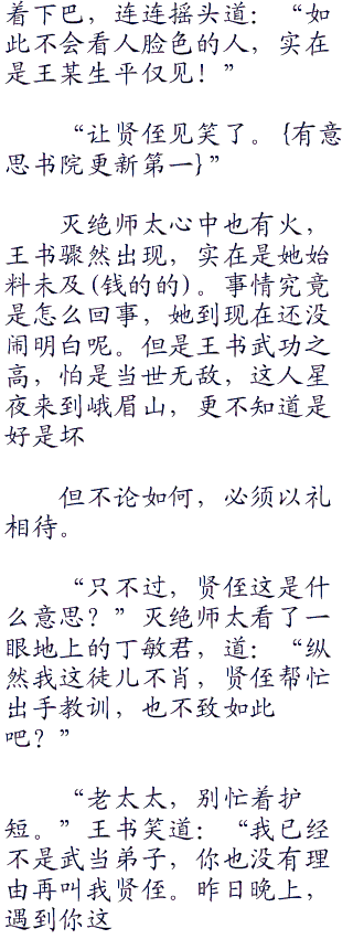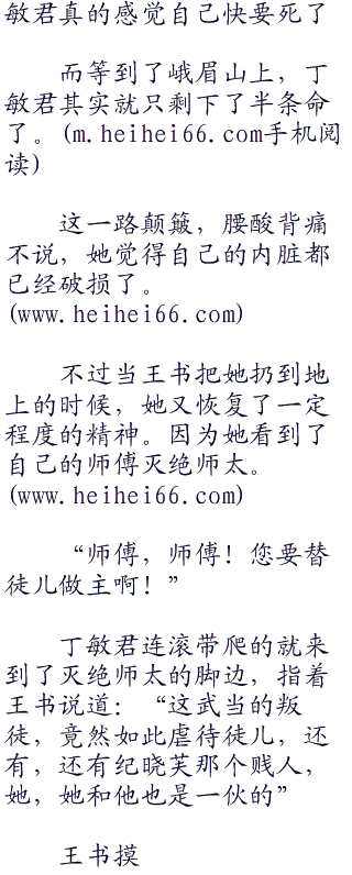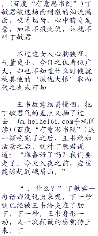 丁敏君恨得不能呸王书一脸:“你做梦,你你这邪魔外道,无耻之徒!你”