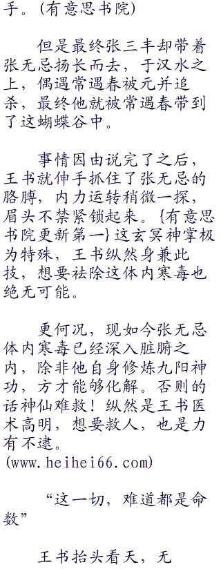 王书眨了眨眼睛:“中了玄冥神掌?什么时候的事情?”