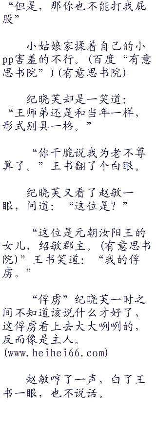 赵敏怒道:“你到底是生气,还是见色起意啊?你没事打她屁股干什么?你为什么不打我的?”