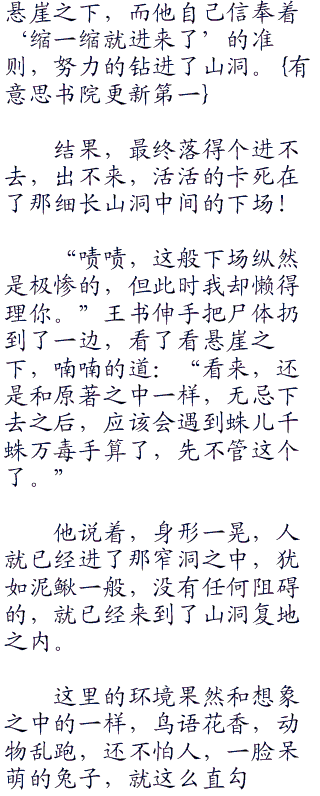 在那名叫卫壁的年轻人带领下,王书总算是找到了张无忌跳崖的地方。
