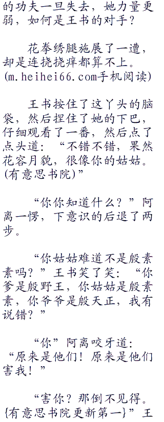阿离更不多说,转身就跑,却又如何能够脱离王书的魔掌,只是一个闪身之间,就已经挡在了她的面前。