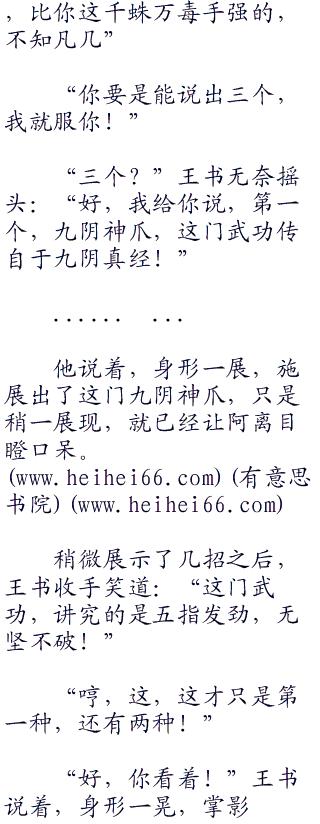 “怎么不能是我?”王书看了看她的脸道:“千蛛万毒手?”