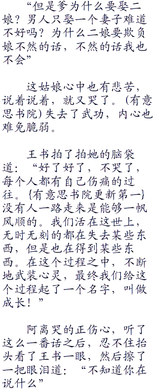 “当真?”阿离不信的看着王书道:“我,我后来知道,你是武当第八侠,和,和我姑姑确实是认识的”