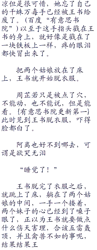 这姑娘总算是把王书给惹毛了:“让你哼哼唧唧的没完没了,好,既然你这么着急,那我们就一起好了!”