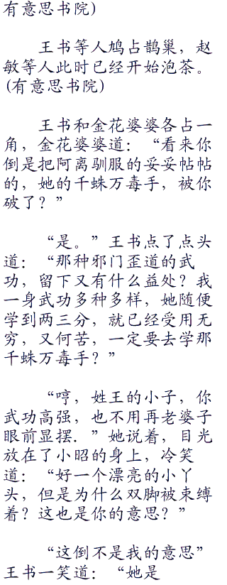 阿离却狠狠地瞪着王书:“你废了我的武功,说要另传武功给我,我这才跟着你的。”