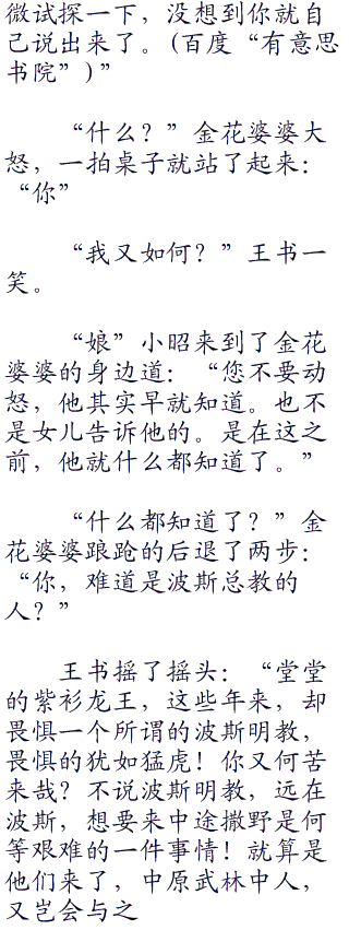 “”小昭看着赵敏:“为什么总感觉,你在把我往火坑里推啊?”