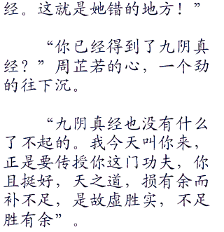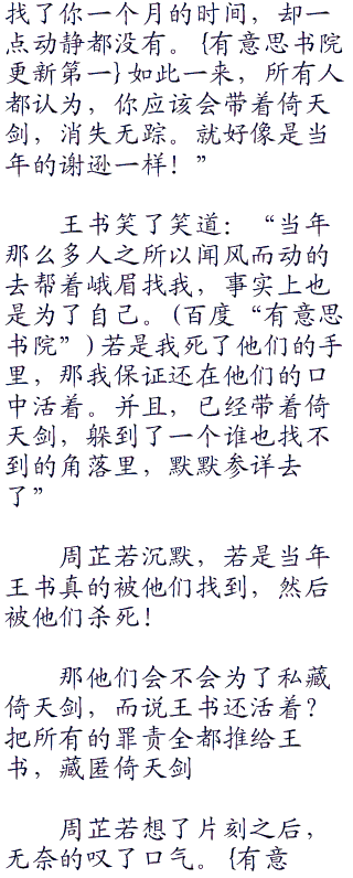 “你如果被他们找到的话”周芷若看了王书一眼道:“只要你交出倚天剑,应该也不会把你怎么样?”