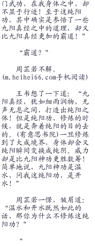 王书看她脸色,就知道她心中所想,当下一笑道:“这是纯阳功!”