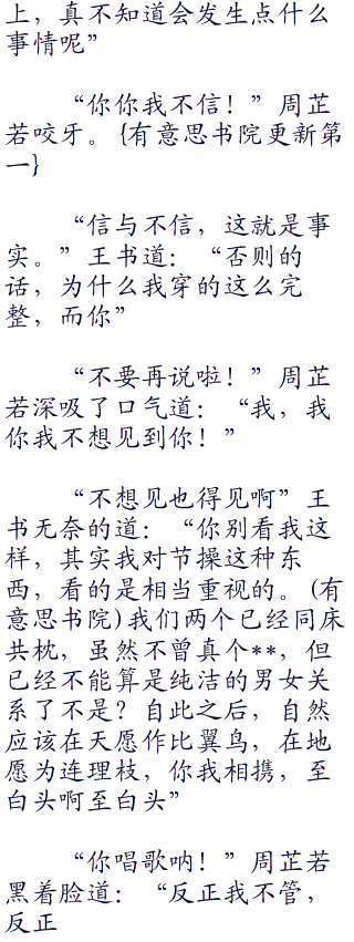 “你够了啊!”王书瞪了她一眼道:“我们又没发生什么”