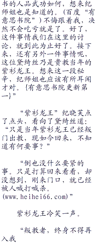 “那又何必?”王书笑道:“想当年,武当峨嵋两派关系亲厚,我和纪师姐也算是多年的老相识,我王