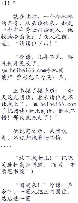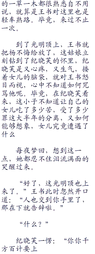 “纪师姐说哪里话?”王书一笑道:“难道你连自己的女儿都不要了吗?”