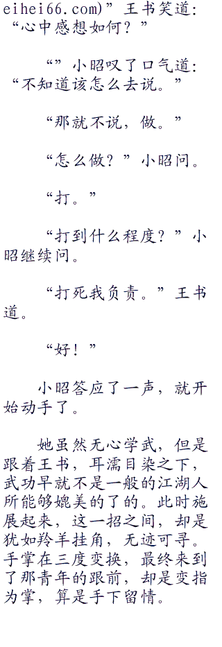 一连几天,王书都是夜上武当山和张三丰说话,小昭戏言他这是每天晚上都要去和张三丰私会,听的王书火冒三丈,狠狠地打了她一顿小屁股。